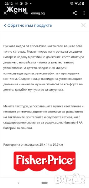 ΠΡΠΈΠ³ΠΈΠ½Π°Π»Π½ΠΈ Π²ΠΈΠ΄ΡΠΈ Fisher Price. ΠΠ΄Π½Π°ΡΠ° Π΅ ΠΊΠ°ΡΠΎ Π½ΠΎΠ²Π° - 45 Π»Π², Π΄ΡΡΠ³Π°ΡΠ° Ρ ΠΌΠ°Π»ΠΊΠΎ ΡΡΠΆΠ΄Π° ΠΏΠΎ Π΅Π΄Π½Π°ΡΠ° ΠΏΡΡΠΆΠΈΠ½Π°, Π½ΠΎ Π½Π°ΠΏΡΠ»Π½ΠΎ ΡΡΠ½ΠΊΡΠΈΠΎΠ½ΠΈΡΠ°ΡΠ° - 35 Π»Π². ΠΠΌΠ°ΠΌ ΠΈ Π½Π΅ΡΠ°Π±ΠΎΡΠ΅ΡΠΈ, ΠΏΠΎΡΠ°Π΄ΠΈ ΡΠΈΠ»Π½Π° ΠΊΠΎΡΠΎΠ·ΠΈΡ Π½Π° ΠΏΠ»Π°ΡΡΠΈΠ½ΠΈΡΠ΅ Π·Π° Π±Π°ΡΠ΅ΡΠΈΠΈΡΠ΅ - Π·Π° ΡΠ΅ΠΌΠΎΠ½Ρ ΠΈΠ»ΠΈ Π·Π° ΡΠ΅Π·Π΅ΡΠ²Π½ΠΈ ΡΠ°ΡΡΠΈ/ΠΊΠ°Π»ΡΡΠΈ - 12 Π»Π²/Π±Ρ.) ΠΠΎΠ°Π»Π°ΡΠ° Π΅ ΠΊΠ°ΡΠΎ Π½ΠΎΠ²Π°, ΡΡΡΠΎ ΠΎΡΠΈΠ³ΠΈΠ½Π°Π»Π½Π° Π½Π° Fisher Price - 40 Π»Π².