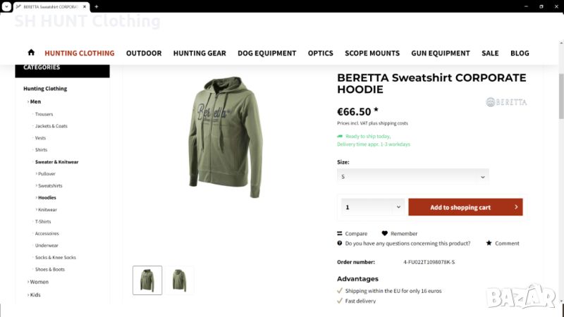 Също така може да ни последвате на страницата ни в Facebook SH HUNT Clothing дрехи за лов риболов и туризъм