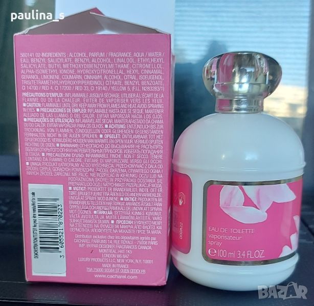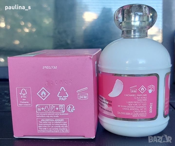 1. Дамски френски парфюм с доказано качество в годините / 100ml EDT, в тестерна опаковка, абсолютен оригинал, намирам го в Мейк ъп от 50ml, в комплект. Снимките ми са реални. Липсват точно 2 фъса за проба от момента на купуването му на сляпо онлайн. Много шлейфов, траен и сладък за моя вкус. Няма нищо общо с Анаѝс Анаѝс Л'Орижинал, за любители на сладките парфюми. Информацията и ароматната пирамида са от Фрагрантика.