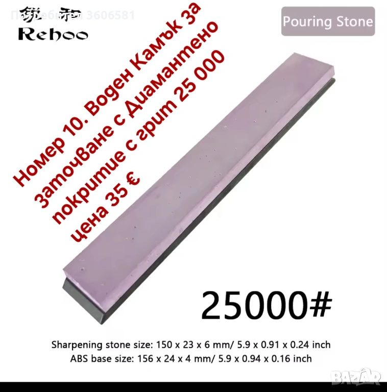 При закупуване на Камъни/Стока за над 95€ или повече подарък Нож нов + Водач на ъгъл + Дървена Бамбукова Основа)