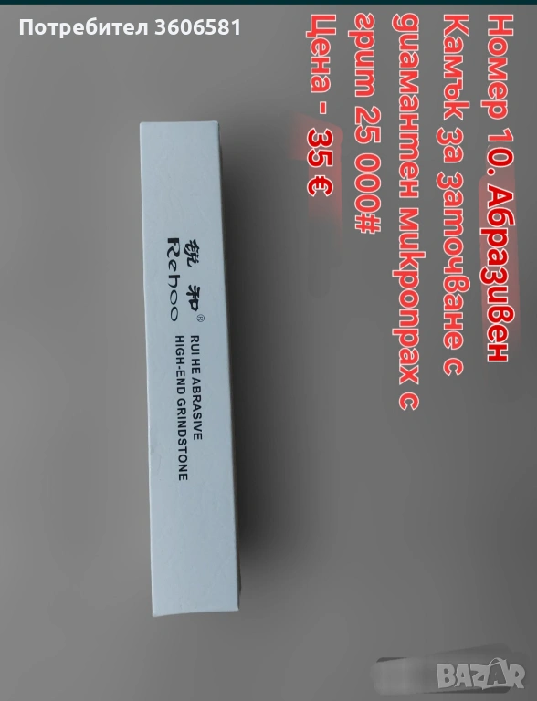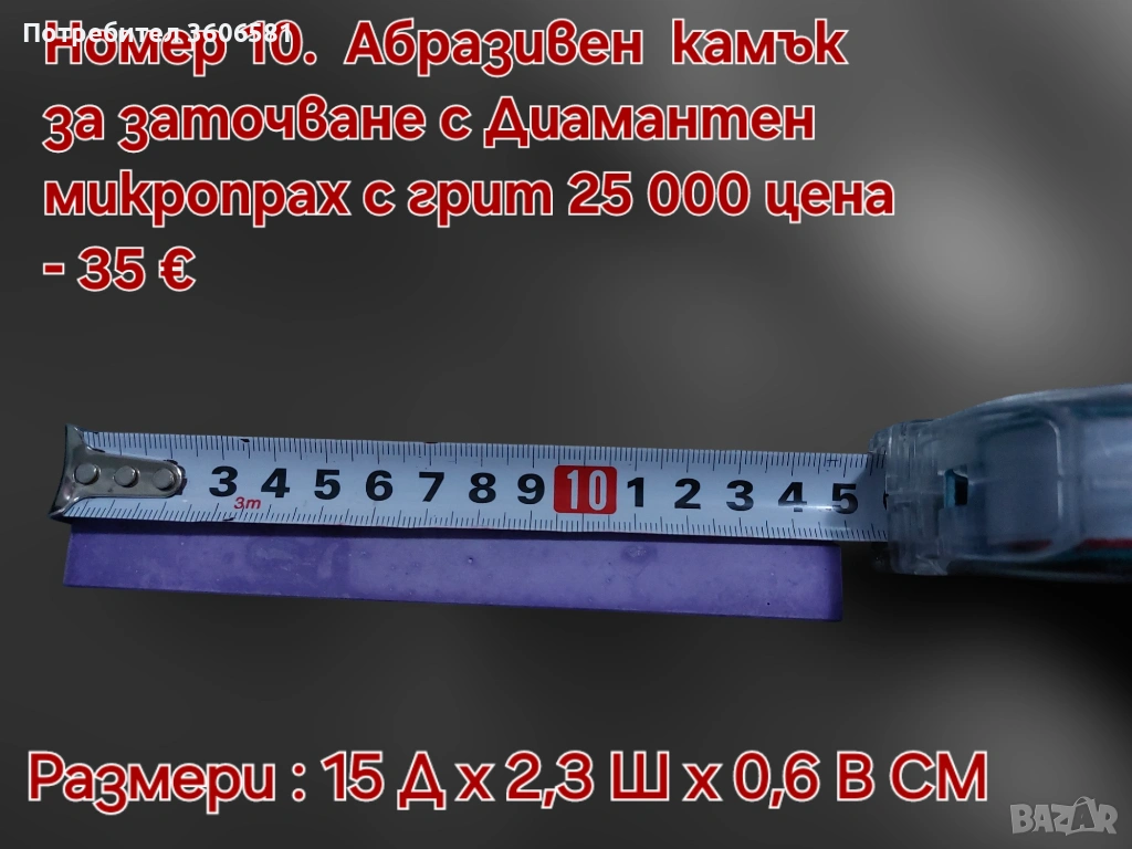 Номер 10. Абразивен Камък за заточване с диамантен микропрах с грит (зърност, ситност)