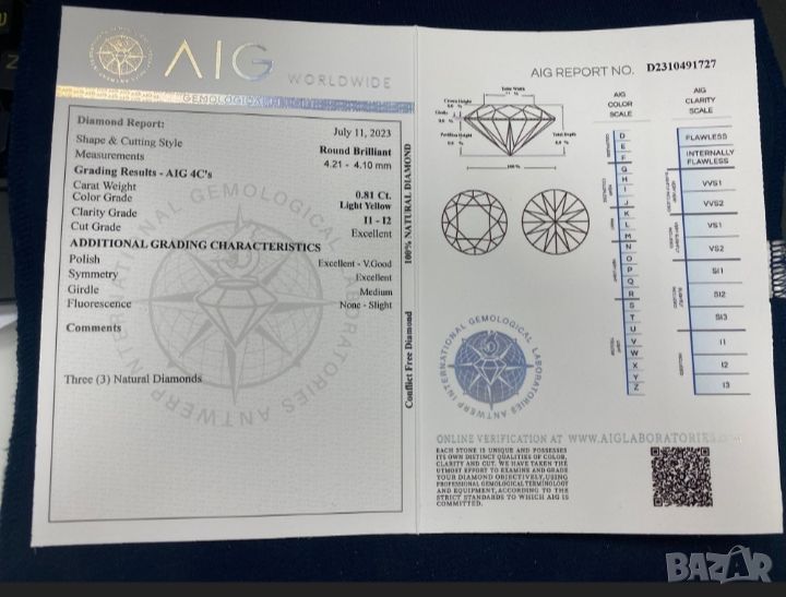 Диамант/и 3 бр. 0,81 ct. 💯 % натурални → Обява 45681642