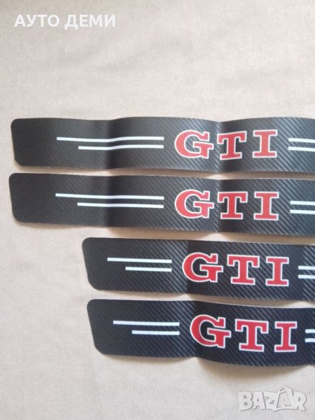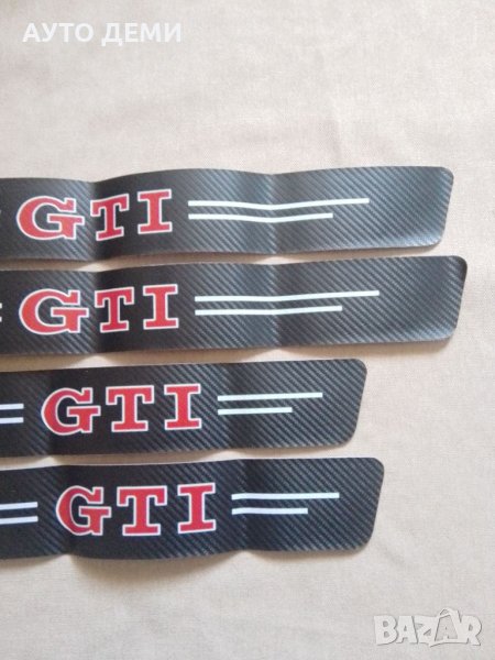 Продавам качествени карбонови стикери за прагове на автомобил с червено и бяло лого GTI .