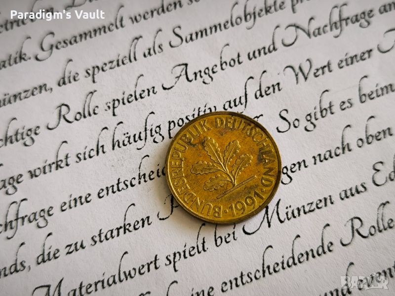 Монета - 10 пфенига от 1991г.; серия D
