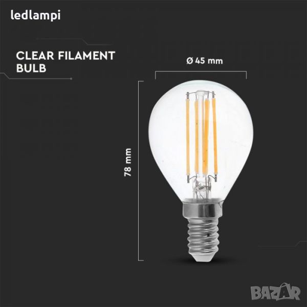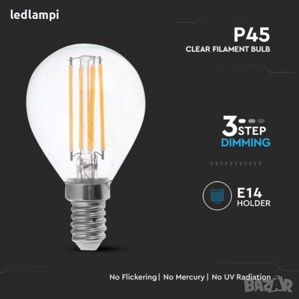 LED лампа 4W Filament сфера E14 3 Step Dimming Топло Бяла Светлина