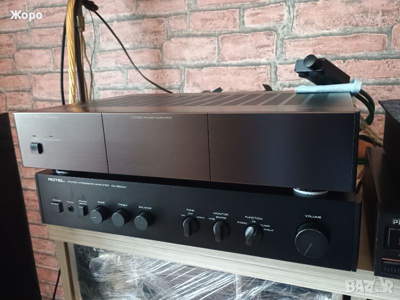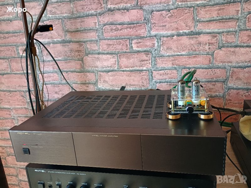 крайно стъпало Rotel RB-960BX dual mono 2x4 транзистора, 2 независими трансформатора, в напълно фабричен вид, фабричният гаранционен стикер стои все още отдолу. В добре запазен външен вид, с една единствена точица отпред на панела и съвсем леки следи от употреба по капака, това е всичко. Стъпалото притежава много плътен и обемен звук при слушане, мн естествен човешки глас в записите, какъвто е рядкост да се чуе, като вокала не се смесва с баса и не се потулва зад него, разделя звуците много добре.