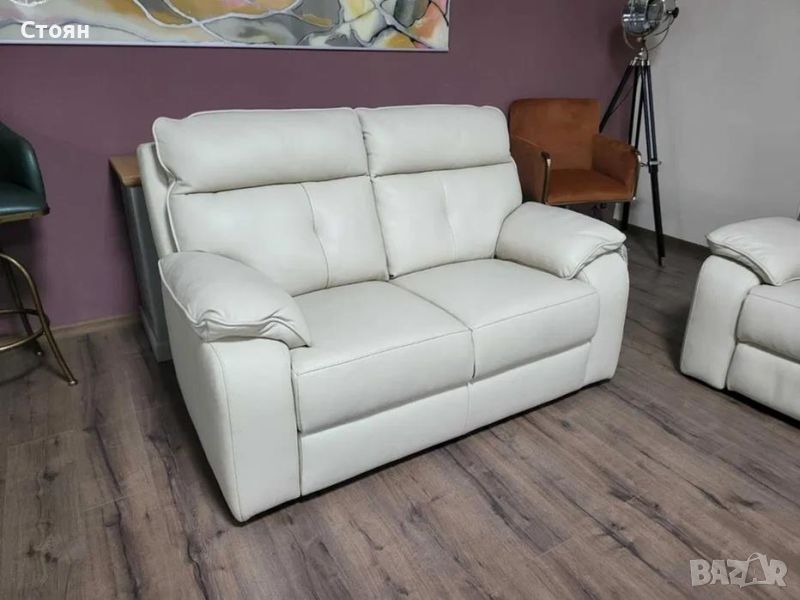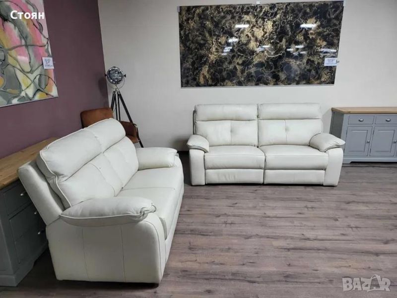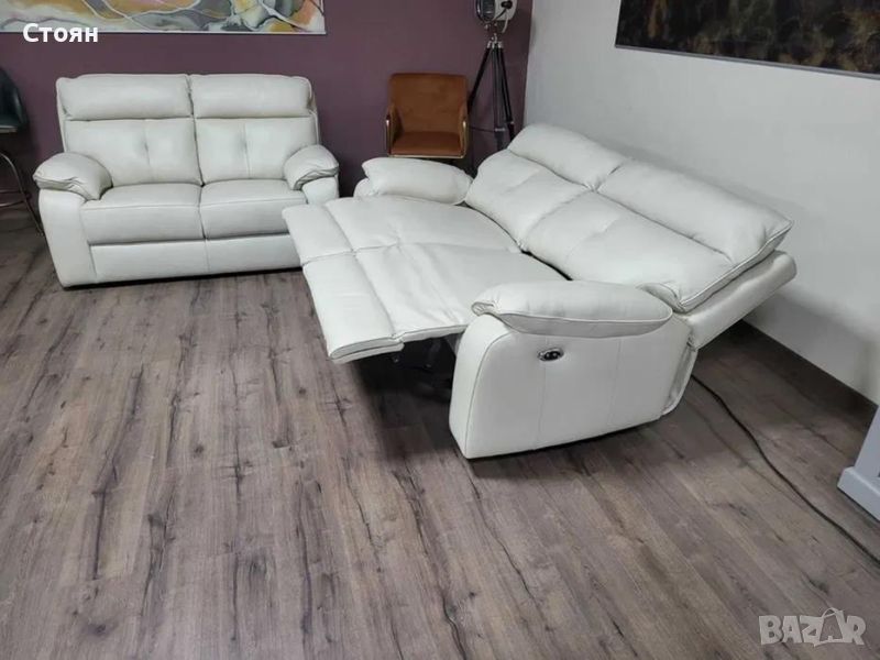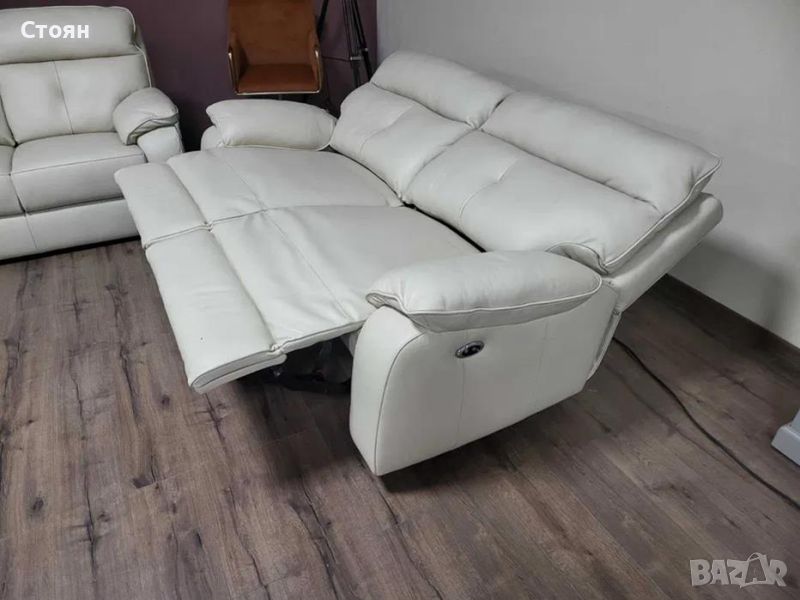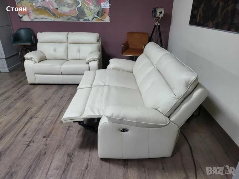 Италиански кремав кожен комплект дивани тройка и двойка Lugano. Диванът тройка е с електрически релаксиращ механизъм за краката.
