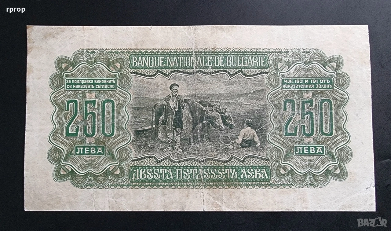 България. 250 лева. 1943 година., снимка 1 - Нумизматика и бонистика - 45692881 България. 250 лева. 1943 година., снимка 2 - Нумизматика и бонистика - 45692881 1/2