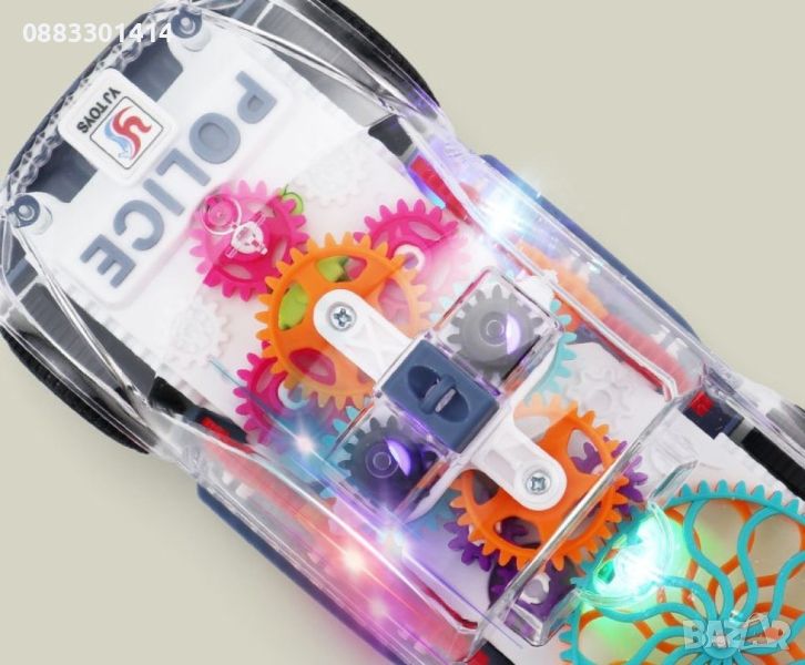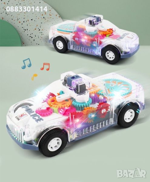 Музикална и светеща, прозрачна, полицейска кола играчка за деца.
