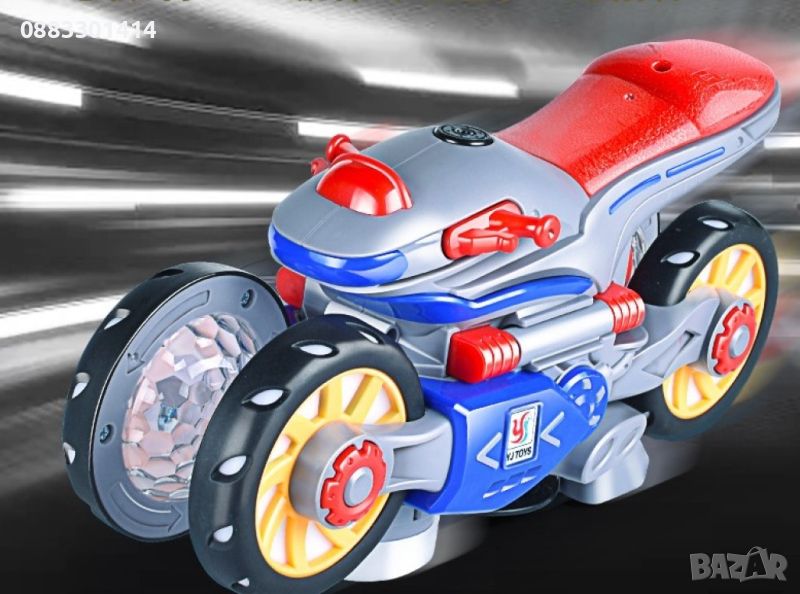 Каскадна, светеща играчка мотор, въртяща се на 360 градуса с подвижни гуми.