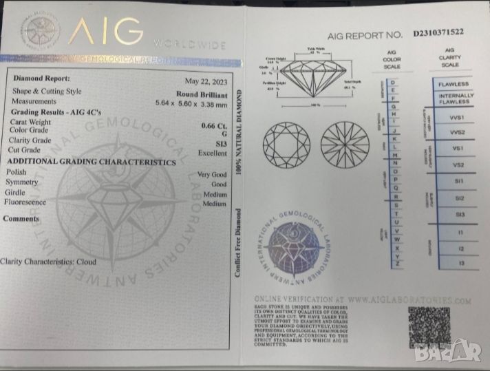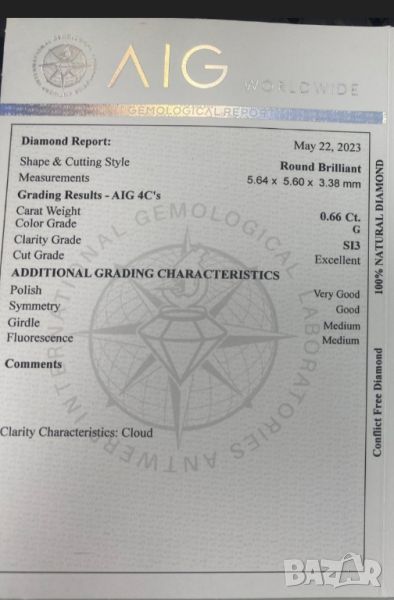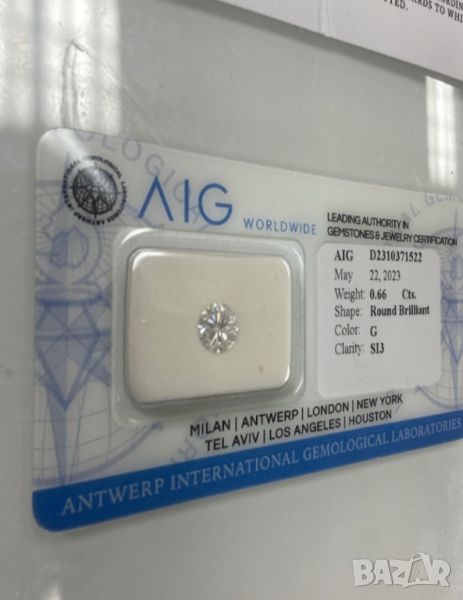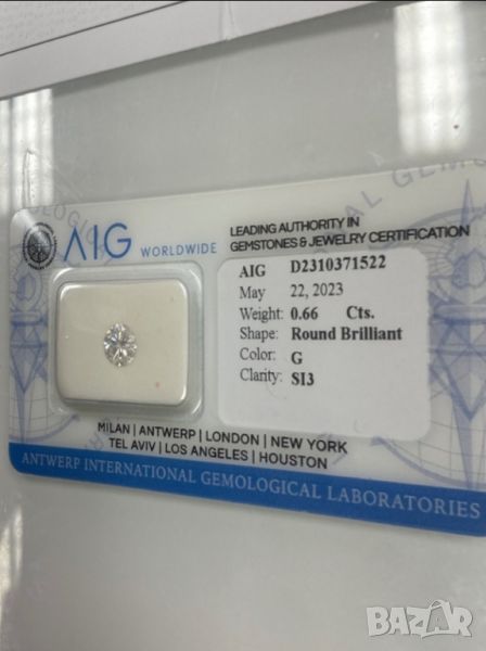 Диамант 0,66 ct. 💯% Натурален,AIG сертификат → Обява 45694964