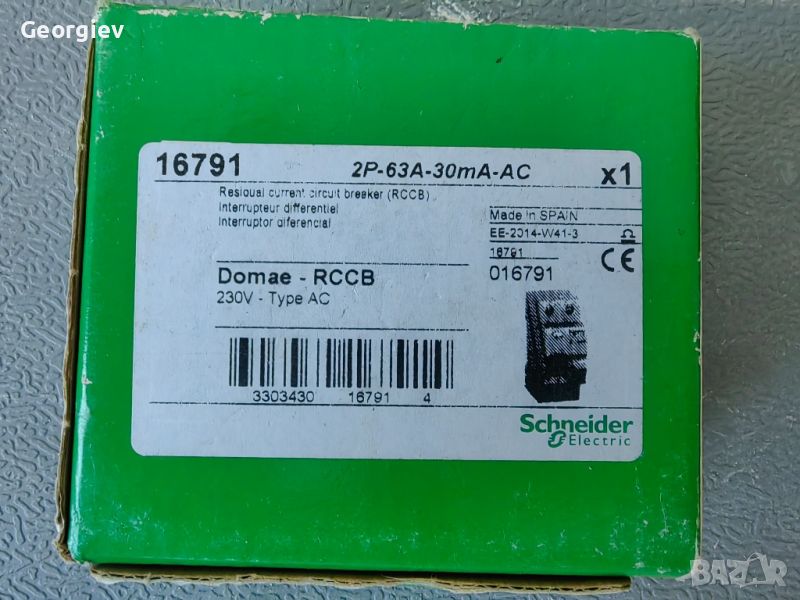 SCHNEIDER ELECTRIC ДЕФЕКТНОТОКОВА ЗАЩИТА ID DOMAE 2P 63A 30MA КЛАС AC 16791