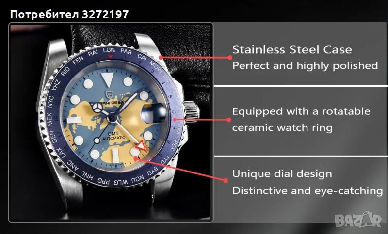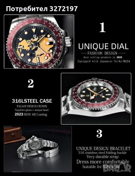 PAGANI DESIGN автоматичен часовник с Японски механизъм SEIKO NH34 GMT,стъкло сапфир,водоустойчив