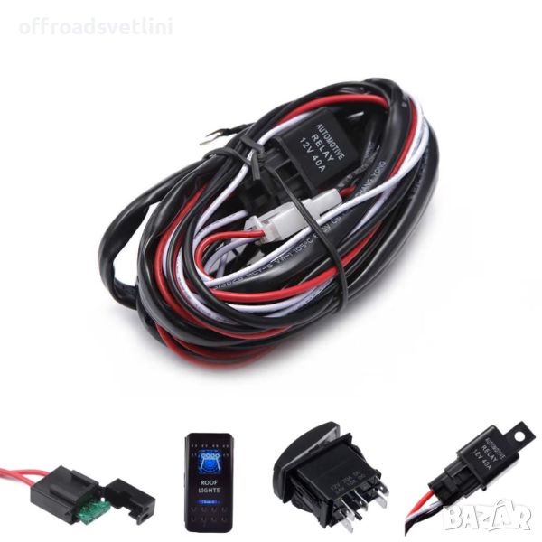 Комплект Oкабеляване за Лед Барове ,Фарове и Други с Бутон За Вграждане с LED Подсветка, Кабелни Обувки , Предпазител , Реле
