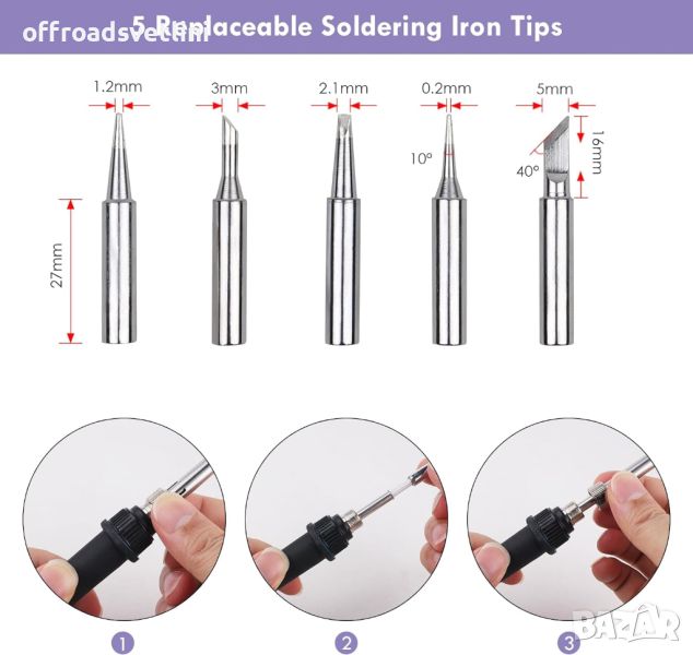 5 х различни накрайника за поялник