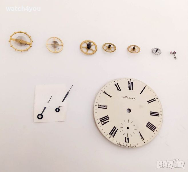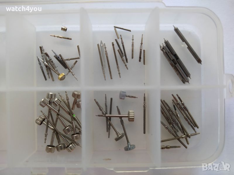 Разполагаме с богат набор от части за механични и кварцови часовници, будилници, стенни часовници: Баланси, Оси, Анкери, Ремонтоари, Коронки, Пружини, Колелета, Колела Уплътнения за заден капак, Уплътнители и др.