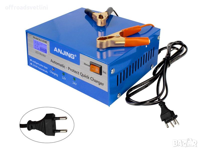 Интелигентно импулсно зарядно устройство, следи мощността и състоянието на зареждане 12V / 24V, автоматично изключва, при пълно зареждане на батерията.