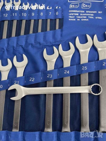 В комплекта са включени ключове: 6, 7, 8, 9, 10, 11, 12, 13, 14, 15, 16, 17, 18, 18, 19, 20, 21, 22, 23, 24, 25, 27, 30, 32мм