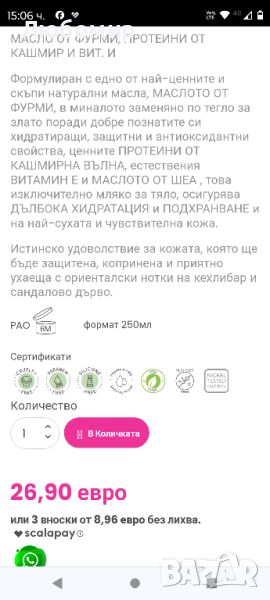МАСЛО ОТ ФУРМИ, ПРОТЕИНИ ОТ КАШМИР И ВИТ. И