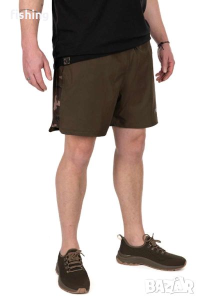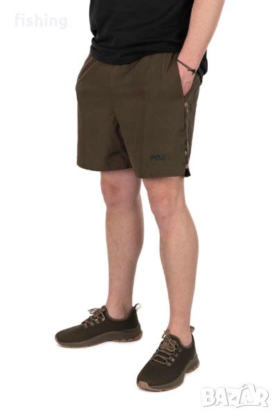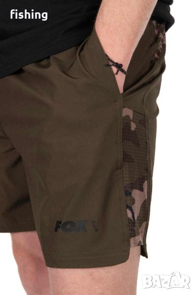 Fox Khaki/Camo LW Swim Shorts са къси шорти подходящи за носене в летните риболовни дни както и за плуване. Изработени са от леко разтеглива материя и притежават връзка за регулиране на талията. Материята им съхне бързо и има водоотблъскващо покритие. Под двата странични джоба има мрежеста камуфлажни лента за допълнителна вентилация. Наличието на вътрешен, мрежест слип прави модела подходящ и за плуване. Изработен от 90% полиестер, 10% еластан / мрежеста подплата: 100% полиестер.