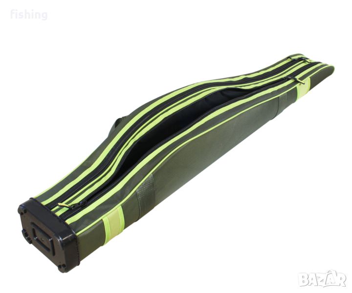 Висококачествен двоен твърд калъф от линията Tackle Code, подходящ за две спининг или боло въдици с макари. Предлага се в два варианта: TC 129 за пръчки с дължина на снадката до 1.20 m и TC 102 съответно за 1.50 m. Класически двоен модел с предвидено пространство за макари, позволяващ надеждно съхранение и удобно транспортиране на въдиците с монтирани към тях макари. Калъфът е покрит с устойчива материя, отвътре има твърда вложка и подплатени разделители, а в долния си край солидна PVC основа. Разполага още с регулируема подплатена презрамка, удобна дръжка за носене на ръка и устойчиви ципове с лого. Изключителен продукт от линията Tackle Code, който ще ви зарадва с практичен дизайн и модерна визия.
