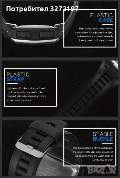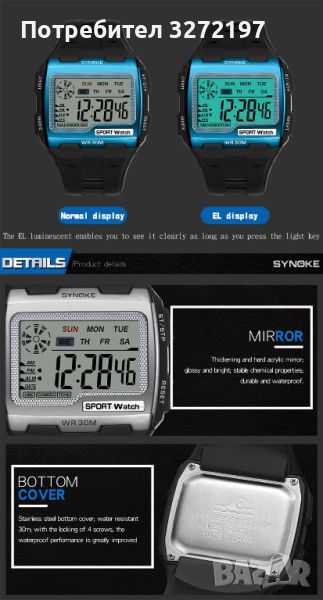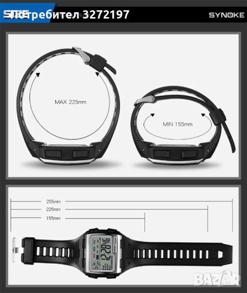Цифров часовник SYNOKE PANARS голям квадратен циферблат,аларма,хронограф и др.