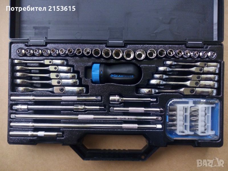 GEARWRENCH качествени къси ГЛУХИ вложки БИТОВЕ удължители МАЛКИ Гаечни ключове ТИП подвижна глава тресчотка 60 части В КУТИЯ
