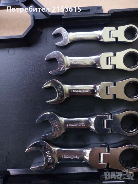 5 броя империални Гаечни ключове тресчотка 3/8 , 1/2=13мм ,9/16,
