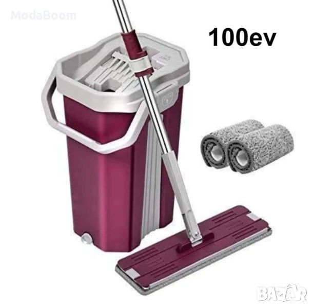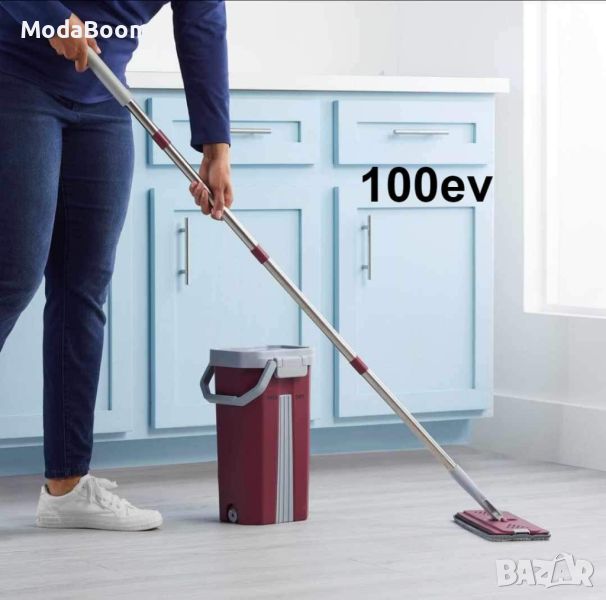 Супер лек и компактен комплект за почистване на подове - плосък моп с кофа. Микрофибърната подложка на мопа почиства идеално повърхностите. Кофата на мопа има вертикална система за изплакване и подсушаване, която е много удобна, не капе и не пръска излишна вода. Почиствате дори трудно достъпните места и ъгли, благодарение на въртящата се почистваща глава. Благодарение на компактните си размери, комплектът се съхранява лесно и е подходящ за малки помещения с ограничено пространство за съхранение.