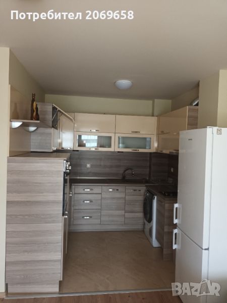 Кухнята е изцяло оборудвана,печка микровълнова,хладилник, съдомиялна,пералня и посуда за готвене и сервиране.