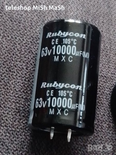 Продавам чисто нови качествени електролитни кондензатори с капацитет 10000 mf / 63V марка Rubycon сертицирани за качествен продукт- CE ,използвани най-често в аудио техника