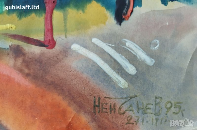 Туш, акварел, темпера, размер на картона 50х36 см., има леки напуквания на местата, рисувани с темперна боя.
