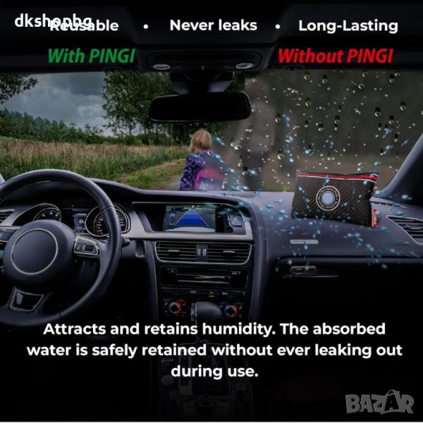 С нашата иновативна технология на влагоуловителя, излишната влага в автомобила ви бързо и ефективно се поглъща и се задържа, предотвратявайки замъгляването на прозорците и намалявайки риска от неприятни инциденти по пътя. Благодарение на интелигентния индикатор за влага, винаги ще знаете кога е време за презареждане, като просто изсушите торбата с гранули в микровълнова фурна за няколко минути.