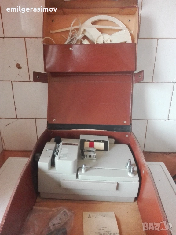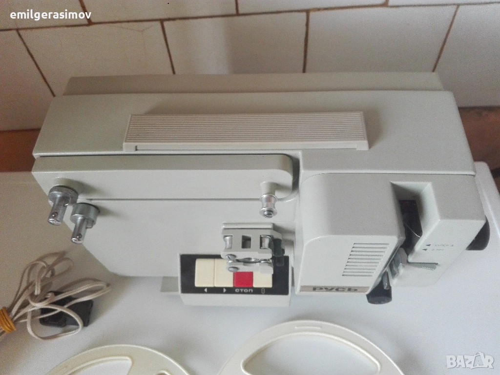 1. Стара съветска киномашина "Русь" , закупена 1975 г. Работи. Върти и в двете посоки. Налични две ролки , захранващ кабел , ръкохватка за ръчно навиване на лентата. Оригинален куфар. Цена 30 евро.