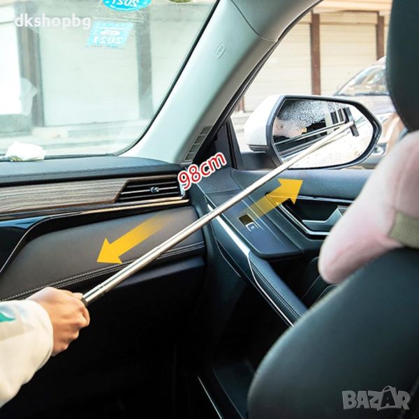 Най-важното предимство на нашата регулируема мини чистачка е нейната възможност да се разтяга до 98 см, като по този начин осигурява оптимално покритие на повърхността на огледалото, независимо от размера му. Така вие можете да настройвате дължината на чистачката според вашите предпочитания и нужди.