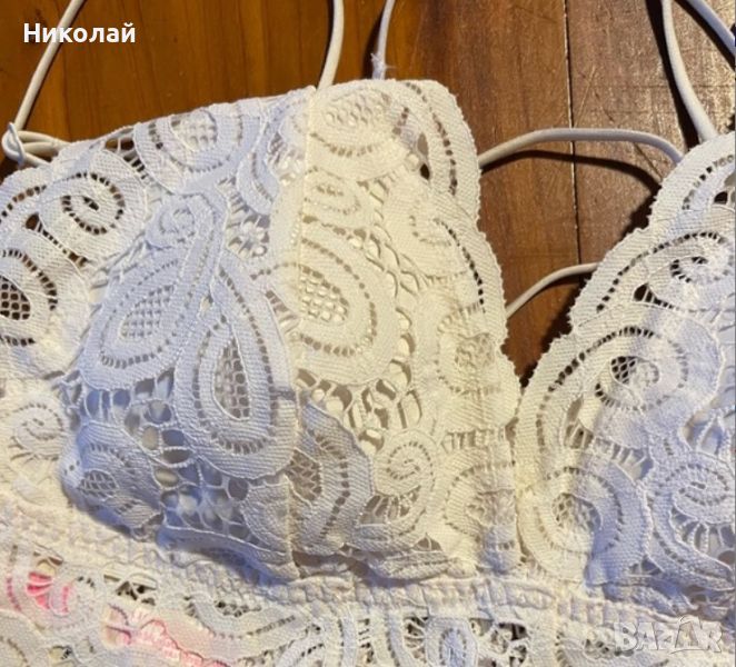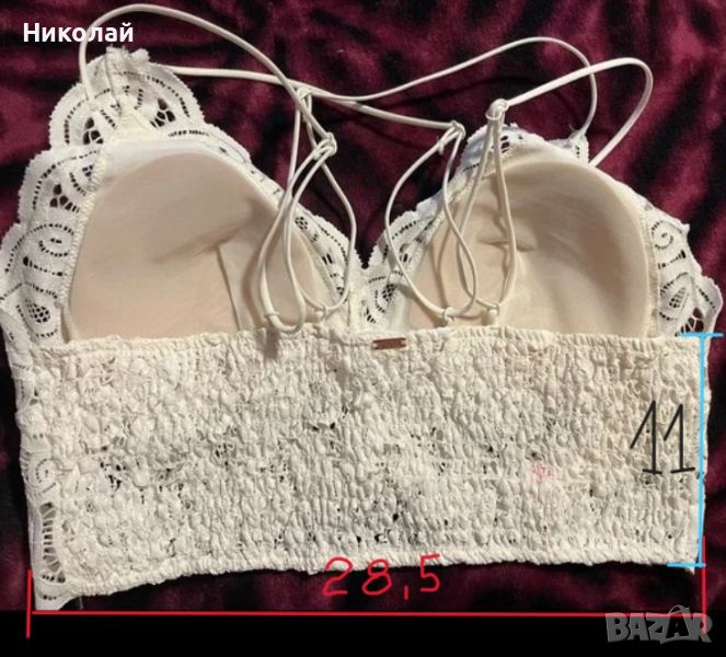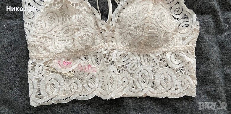 Сутиенът е с удобна по-висока кройка и леко подплатени чашки, като подплънките при желание могат да се махнат. Чашките са приятно меки и гладки. Горнището е изработено от фина дантела, което го прави изключително женствен. Дантелата в задната част е еластична и има разтегливост
