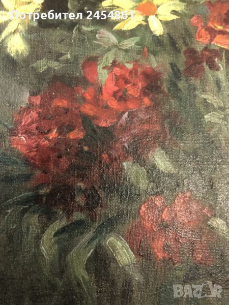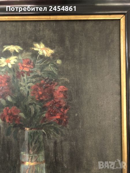 картина, маслени бои, платно, натюрморт, цветя, антик → Обява 45711563