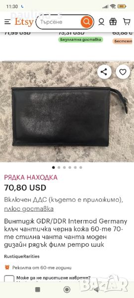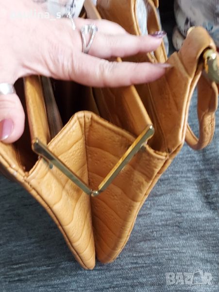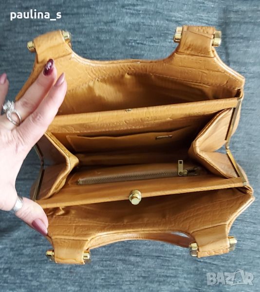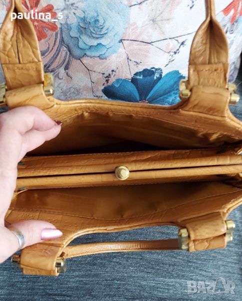 винтидж чанта от 60/70-те години, перфектно състояние, с крокодилска шарка, а може би и кожа! Никога не е ползвана. Производството е в ГДР - Източна Германия, когато кожите бяха кожи и качеството на ниво. Има три отделения, две обемни и едно в средата с позлатени метални части. Мащабирането е с дланта на една от снимките. Приложен е и скрийншот за сверяване на цените, но там арткулът е ползван портфейл.