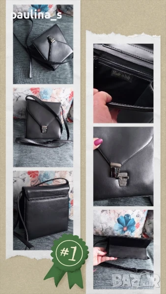 2️⃣. Винтидж 1980г / Италианска чанта за през тялото или рамото от естествена кожа - млянка. Цената е крайна 99,99лв / 50 евро. Отвътре хастарът е от сатен. Металните елементи са с черен родий, има един вътрешен джоб с цип. Снимките са реални, чантата е перфектна, като нова, никога не е ползвана.