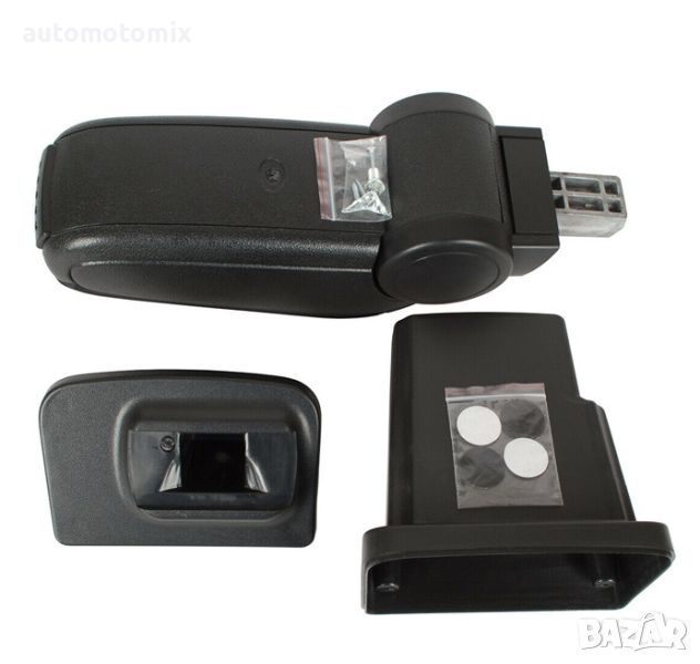 В комплекта са включени видии и болт за сглобяването на подлакътника с пластмасовата поставка, но няма елементи за закрепването към централната конзола.