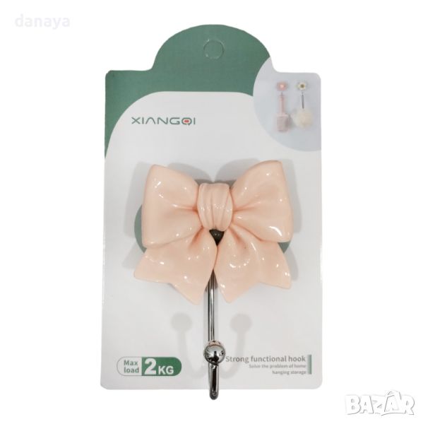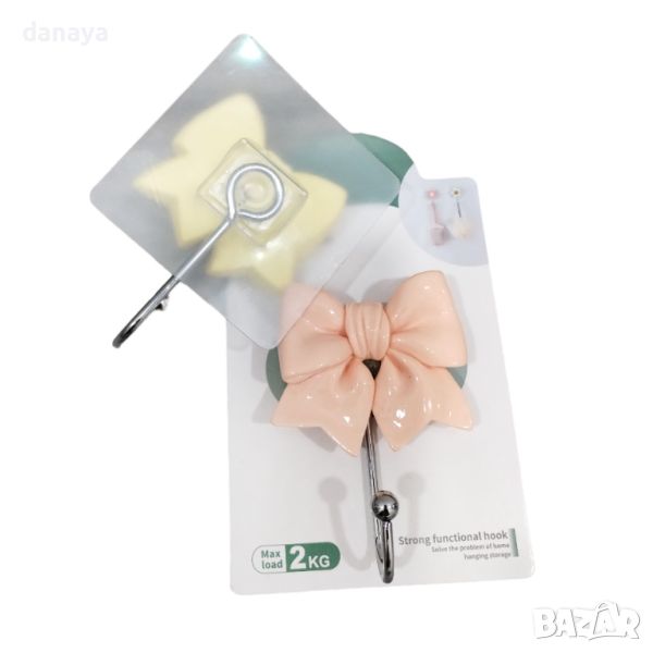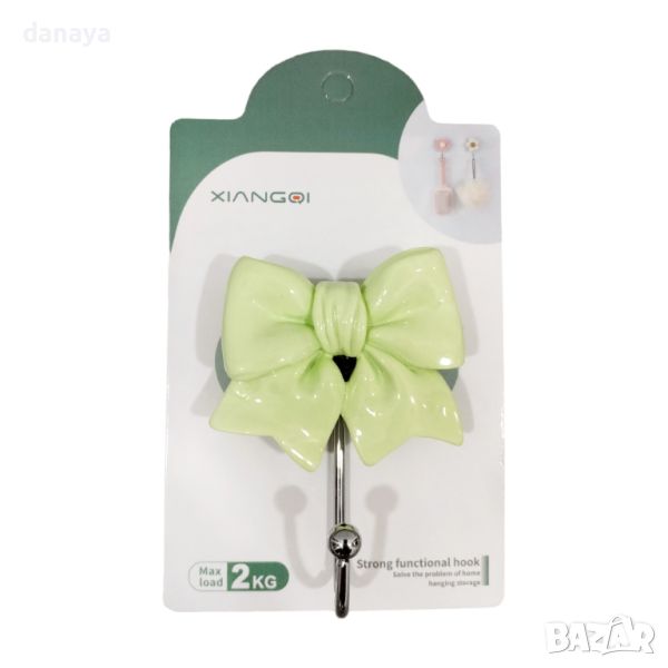 Лепяща закачалка за кухня или баня с една метална кука за закачане. Закачалката има красив акцент цветна панделка. Дизайнът е много свеж и цветен, където и да поставите закачалката, тя ще създава цветно настроение у дома.