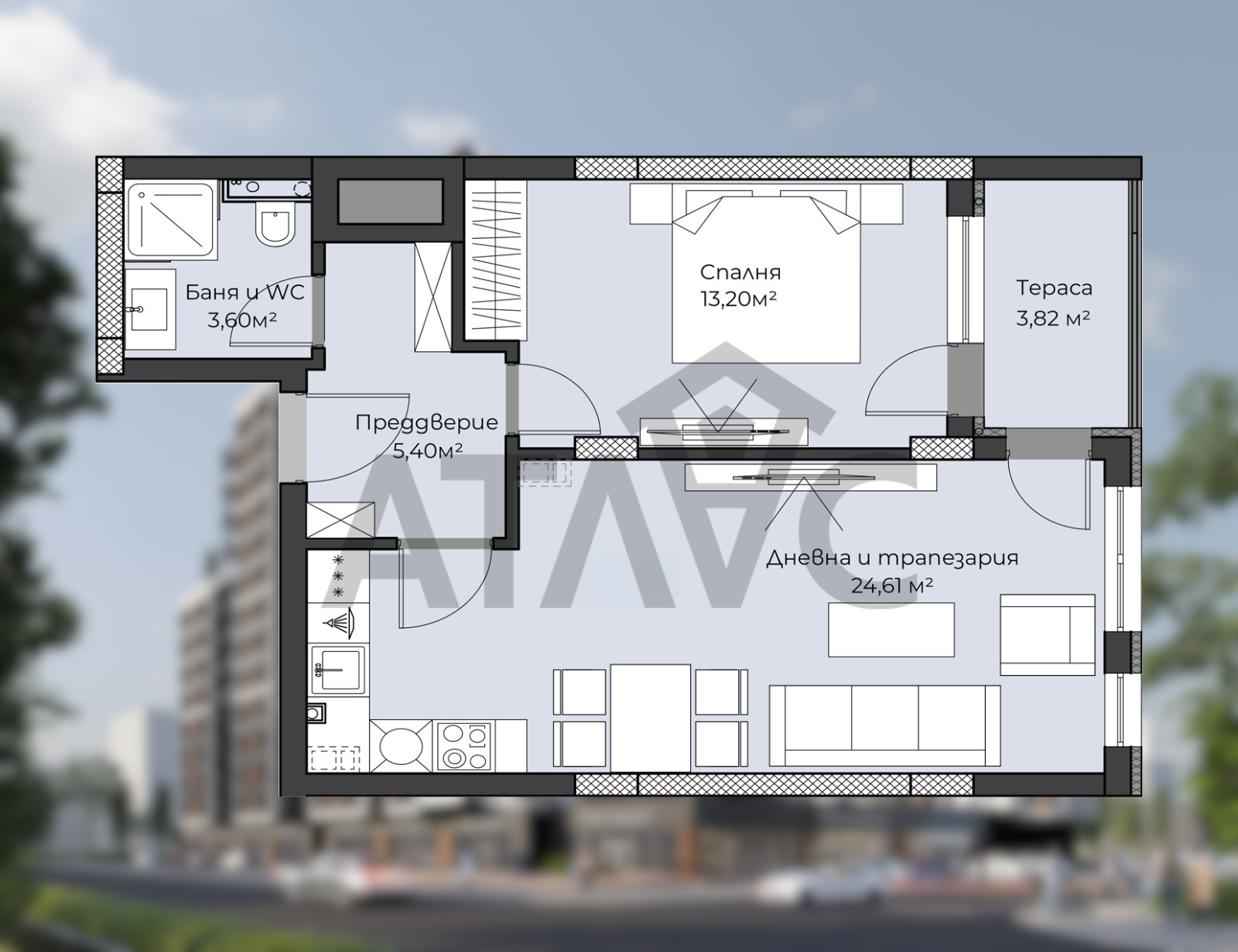 ДВУСТАЕН АПАРТАМЕНТ! ПРЕД АКТ 16! НОВА СГРАДА! ИЗЛОЖЕНИЕ-ЮГ! АТЛАС НЕДВИЖИМИ ИМОТИ Ви предлага ДВУСТАЕН АПАРТАМЕНТ в новострояща се сграда с модерна архитектура и високо качество, в сърцето на кв. Христо Смирненски. Жилището се състои от просторен хол с кухненски кът и трапезария, обширна спалня, входно антре, баня с тоалетна, тераса и килер. Имотът е с изцяло ЮЖНО изложение и се предлага на степен на завършеност Шпакловка и замазка по БДС с ВиК на тапа, ЕЛ. инсталация до ключ! Предлагаме Ви функционален апартамент в близост до всичко необходимо за спокоен и хармоничен начин на живот! В сградата има възможност за закупуване на паркоместа и гаражи! Оказваме пълно съдействие за банково финансиране от ВСИЧКИ ВОДЕЩИ БАНКИ в страната при най-добри условия и цялостна юридическа проверка на имотите, които предлагаме! БЪДЕТЕ ПРОФЕСИОНАЛИСТИ в избора на жилище с АТЛАС НЕДВИЖИМИ ИМОТИ !