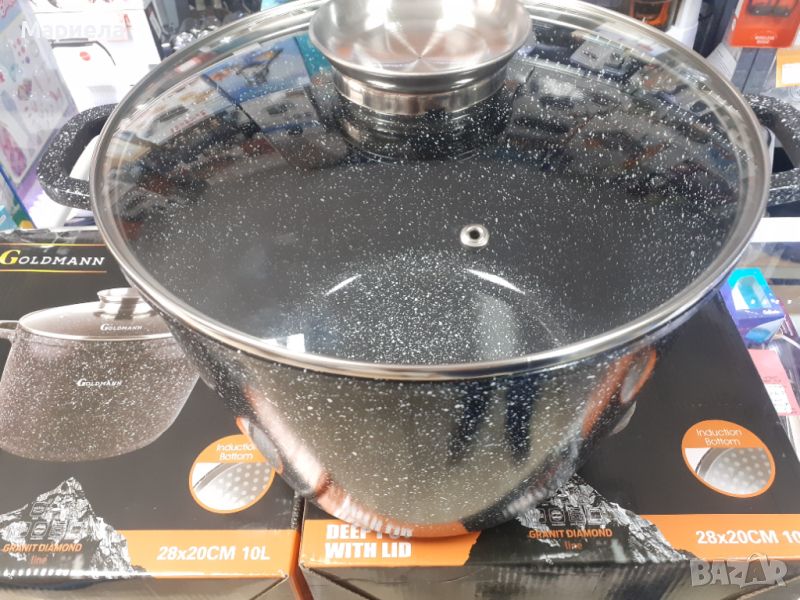Изработена от лят алуминий, 28х20 см, 10 литра, Голдман, керамично покритие, топлоустойчив капак - описание