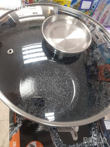 Мраморно керамично покритие: Вътрешната повърхност на съда е покрита с мраморен керамичен слой, осигуряващ повишена здравина на свързване и улесняващ готвенето без мазнини.
