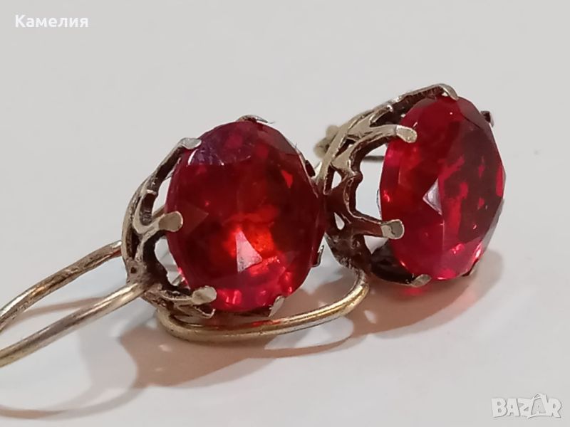 Руски ( съветски) сребърни позлатени винтидж обеци. Проба 875 звезда. 3,3 грам.