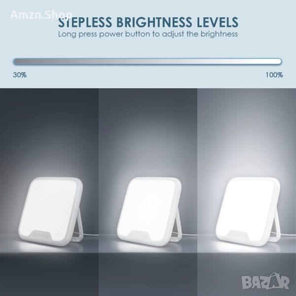 Тази лампа за светлинна терапия има опции за режим на осветяване с плавни настройки на яркостта. Функцията Smooth Dimming улеснява регулирането на нивата на яркост от 25% до 100% с продължително натискане на бутона за захранване. Изберете най-ефективния цвят за осветление за вашите нужди.