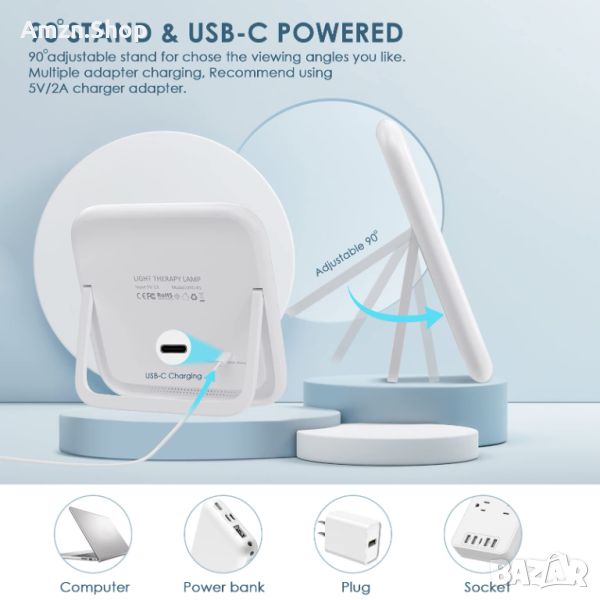 Тази настолна лампа за светлинна терапия се предлага със стойка за завъртане на 90 градуса, регулирайте ъгъла на отваряне, за да позиционирате светлината според нуждите. Преносим за поставяне до лаптоп, на кухненския плот или бюрото в кабината, като пасва на всякакъв вид декорация.