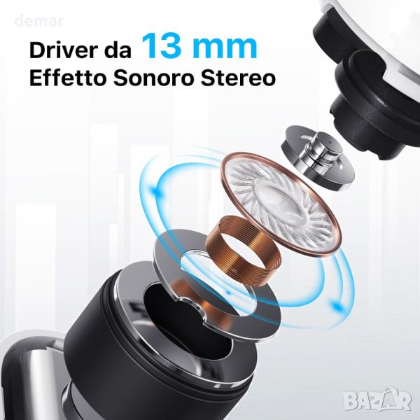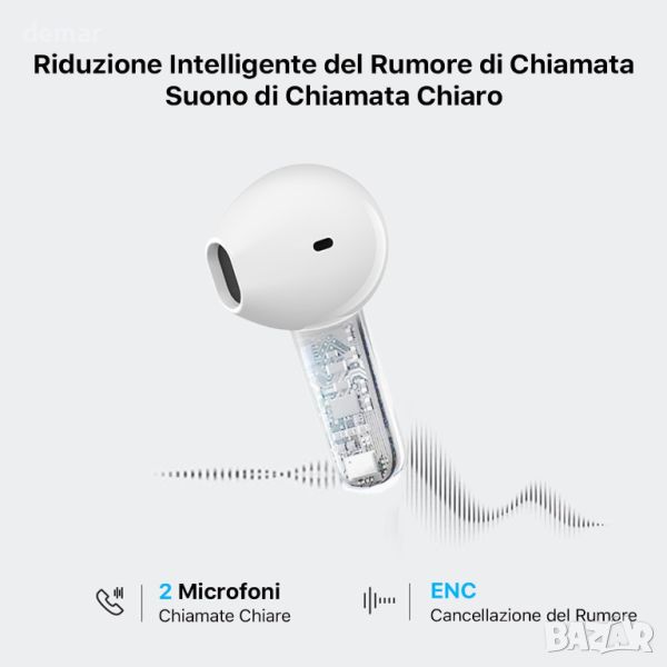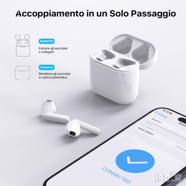 Тези слушалки разполагат с автоматично намаляване на шума за ясни разговори в шумна среда и предлагат завладяващ стерео звук с 13 мм драйвер за балансирано аудио изживяване. Те осигуряват до 5 часа време за възпроизвеждане, което се удължава до 40 часа с една слушалка и 24 часа с двете. Слушалките поддържат безжично зареждане и имат чувствителни сензорни контроли за лесна работа. Проектирани за удобство, тяхната ергономична конструкция, поставена наполовина в ухото, пасва сигурно и удобно за продължително носене.