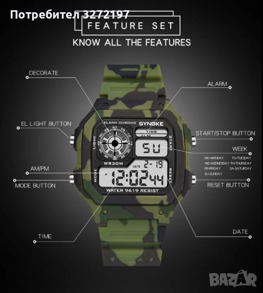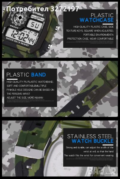 SYNOKE моден камуфлажен цифров часовник Relogio Masculino,Водоустойчив