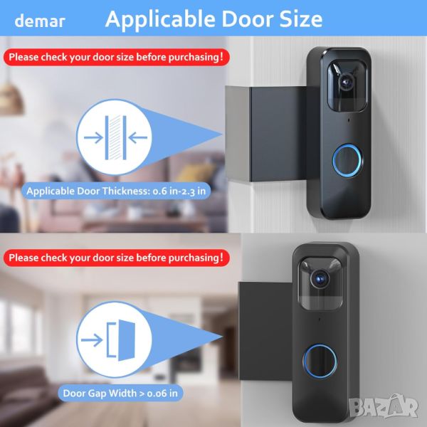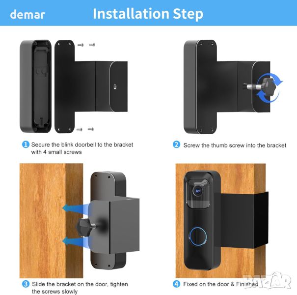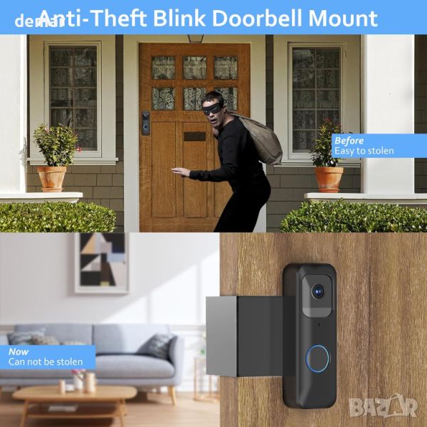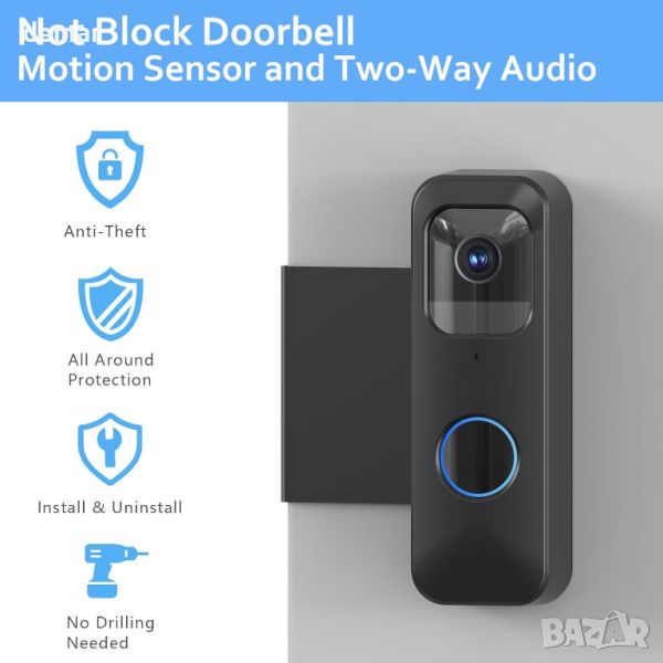 Тази стойка за звънец на вратата на Blink е изключително съвместима със звънците на вратата на Blink и разполага с дизайн против кражба, който здраво държи звънеца на място, като може да се сваля само когато вратата е отворена - идеална за апартаменти, офиси и наематели. Той пасва на люлеещи се навътре врати с дебелина от 0,6" до 2,3" и разстояние над 0,06", но не е подходящ за блиндирани врати с повдигнати ръбове. Пакетът включва стойка, инструкции за монтаж и аксесоари. Инсталирането е лесно, без да е необходимо за пробиване, без да се повреждат вратите или стените. Изработен от висококачествена пластмаса и метал, той гарантира издръжливост, без да пречи на сензорите на звънеца или двупосочното аудио.